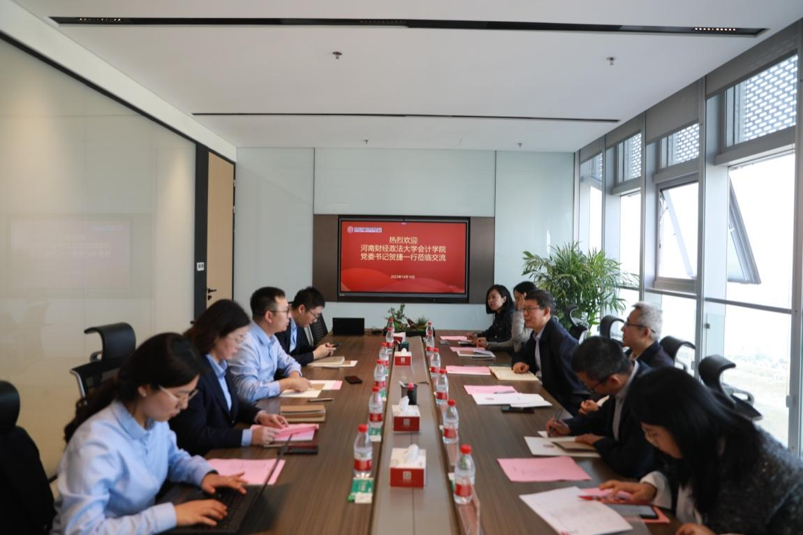 10月16日下午,william威廉中文党委书记贺捷、副院长张肖飞、财务管理系主任叶建华、智能财务系副主任石青梅,青年教师代表李晓楠博士、孙云云博士等一行6人到访河南资产管理有限公司。河南资产管理有限公司总经理崔凯、计划财务部负责人陈翔宇、高级执行总监李孝云、投资投行二部经理牛雨、计划财务部经理闪怡晴等出席本次活动。