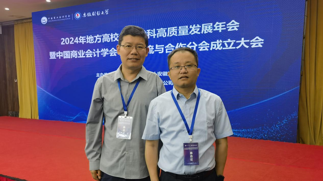 5月18日,由中国商业会计学会、安徽财经大学主办的2024年地方高校会计学科高质量发展年会暨中国商业会计学会学术交流与合作分会成立大会在合肥举办。中国商业会计学会常务副会长谢志华、副会长李凤雏,安徽财经大学校党委副书记、校长朱红军,广东财经大学原校长王华,铜陵学院原院长倪国爱,教育部高等学校会计学教指委副主任委员、中央财经大学袁淳,云南财经大学副校长余怒涛,北京工商大学副校长毛新述等领导嘉宾出席大会。我校教务处副处长谢香兵和会计学院副院长张肖飞参加了此次会议。