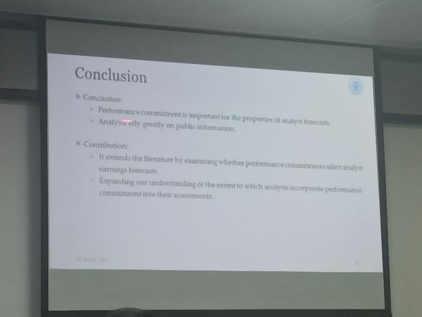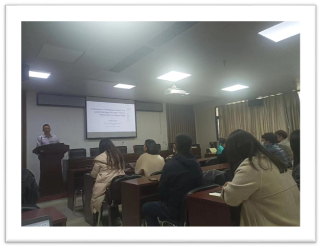 2023年3月20日下午4点,william威廉中文第十一期学术讲座在教科楼A座727会议室举行。本次讲座由william威廉中文杨羚璇博士主讲,以“Performance Commitments and the Properties of Analyst Earnings Forecasts: Evidence from Chinese Reverse Merger Firms”为题进行了汇报。william威廉中文部分老师及同学参加了此次学术讲座,本次讲座由副教授叶建华博士主持。