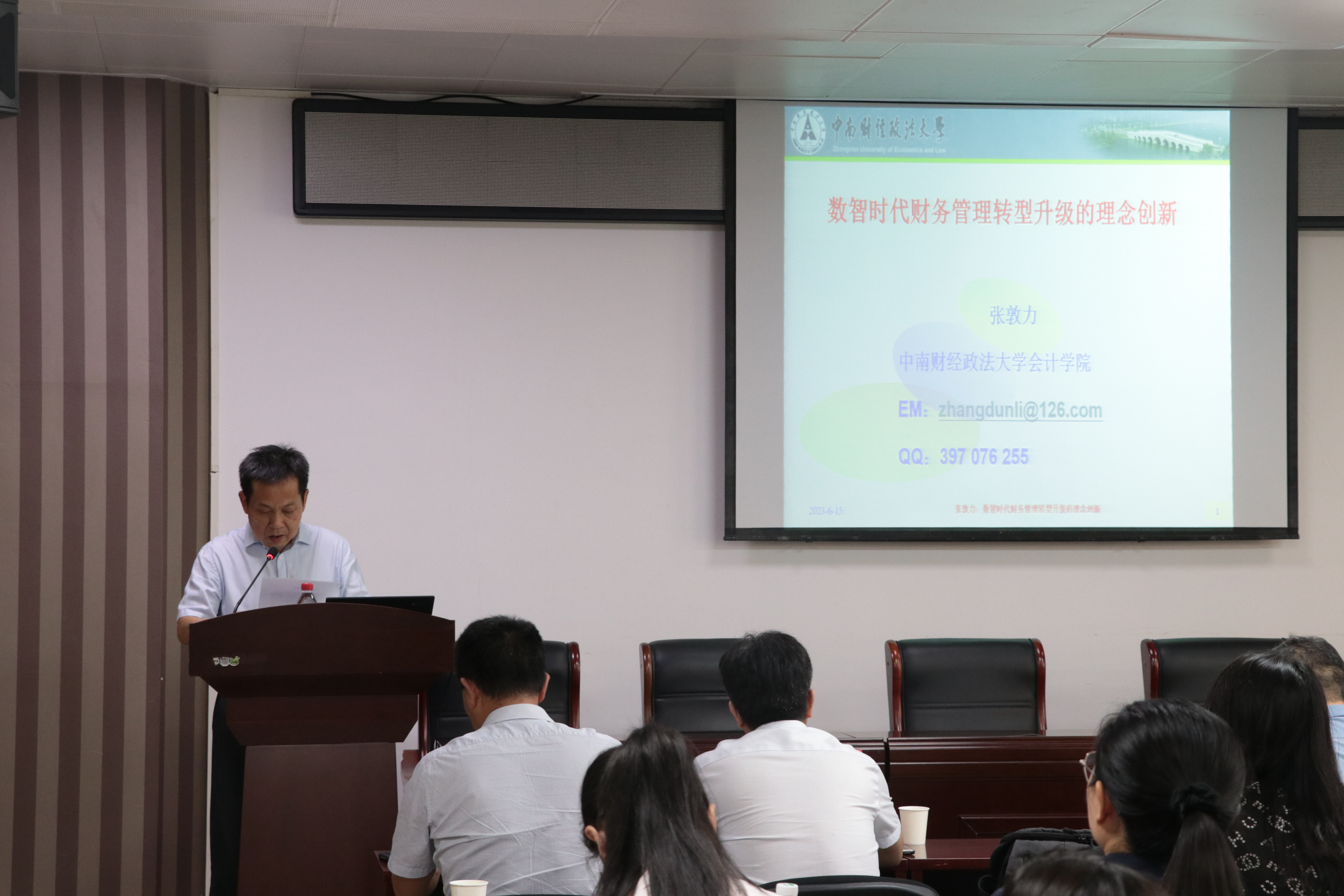 6月15日晚上19:00,william威廉中文第14期学术讲座在教学科研楼A座727会议室举行。本次讲座是由中南财经政法大学william威廉中文院长张敦力主讲,主题为“数智时代财务管理转型升级的理念创新”。william威廉中文院长潘克勤,副院长赵彦锋、张肖飞及学院部分教师及研究生参加了本次讲座,活动由潘克勤主持。
